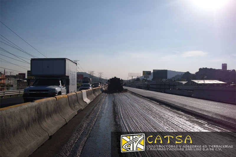 Consistiendo en Trabajos de fresado, construcción de base cementada, aplicacion de riegos de liga, colocación de carpeta asfáltica de 5 cms. y open graded de 3 cms. de espesor.